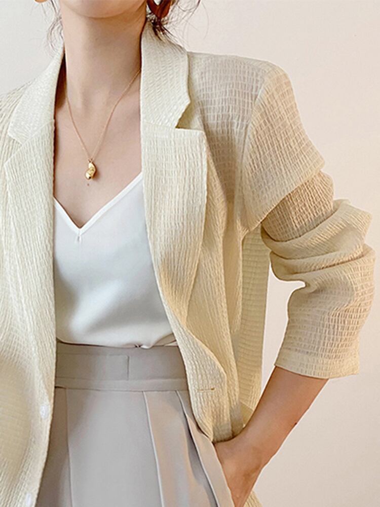 [EWQ] ノッチカラー長袖シンプルブレザージャケットシングルブレストルーズスーツコート秋 16O310 ロング オータム 秋物