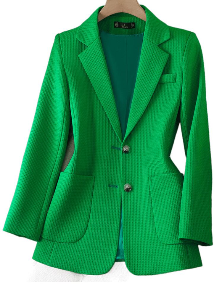 [EWQ] オフィスレディグリーンスーツ長袖ブレザージャケットポケットシングルブレストコート秋 O267 ロング オータム 秋物 会社 学校 通勤や通学にも