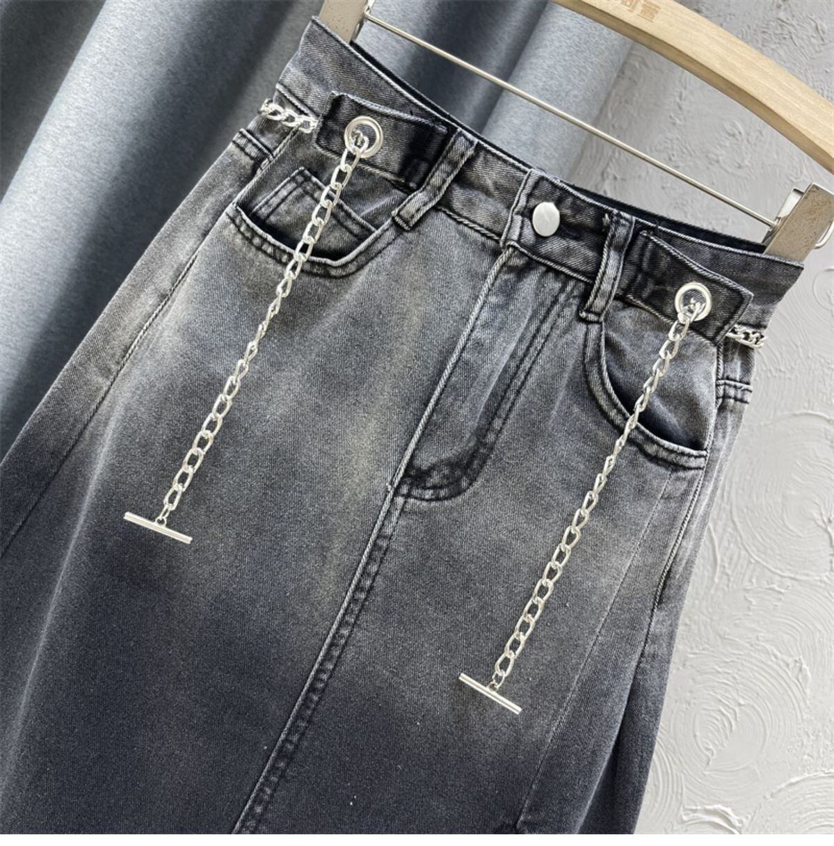 [EWQ] ストリートグラデーションスプリットシックスカートチェーンウエストビッグサイズスカート夏潮 16O314 サマー 夏物