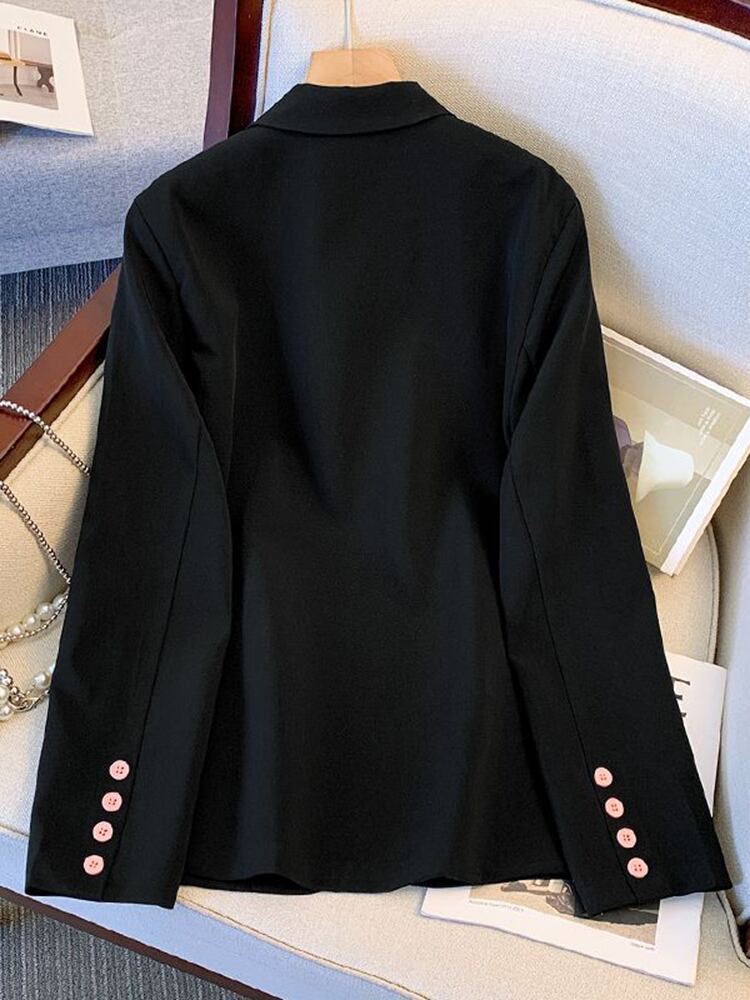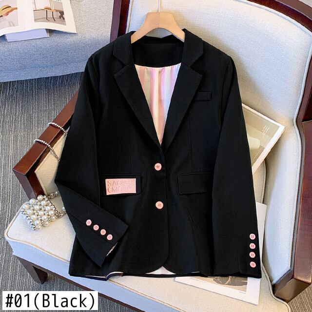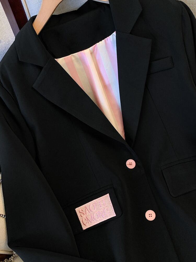 [EWQ] ピンクストライプコントラストブレザーコートレディースレターパッチワークシングルブレストルーズスーツジャケット秋潮ブレザー オータム 秋物