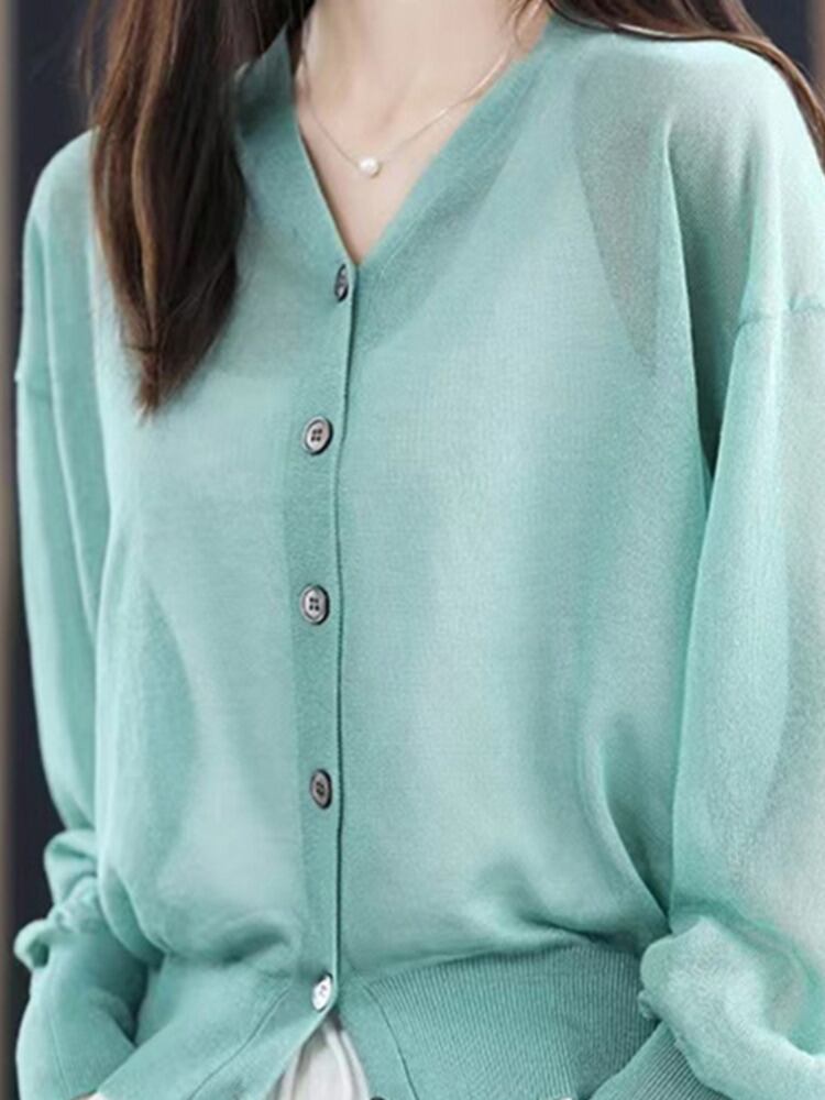 [EWQ]秋薄手カーディガンコートランタンスリーブシングルブレストパースセータージャケットニットコート450 オータム 秋物