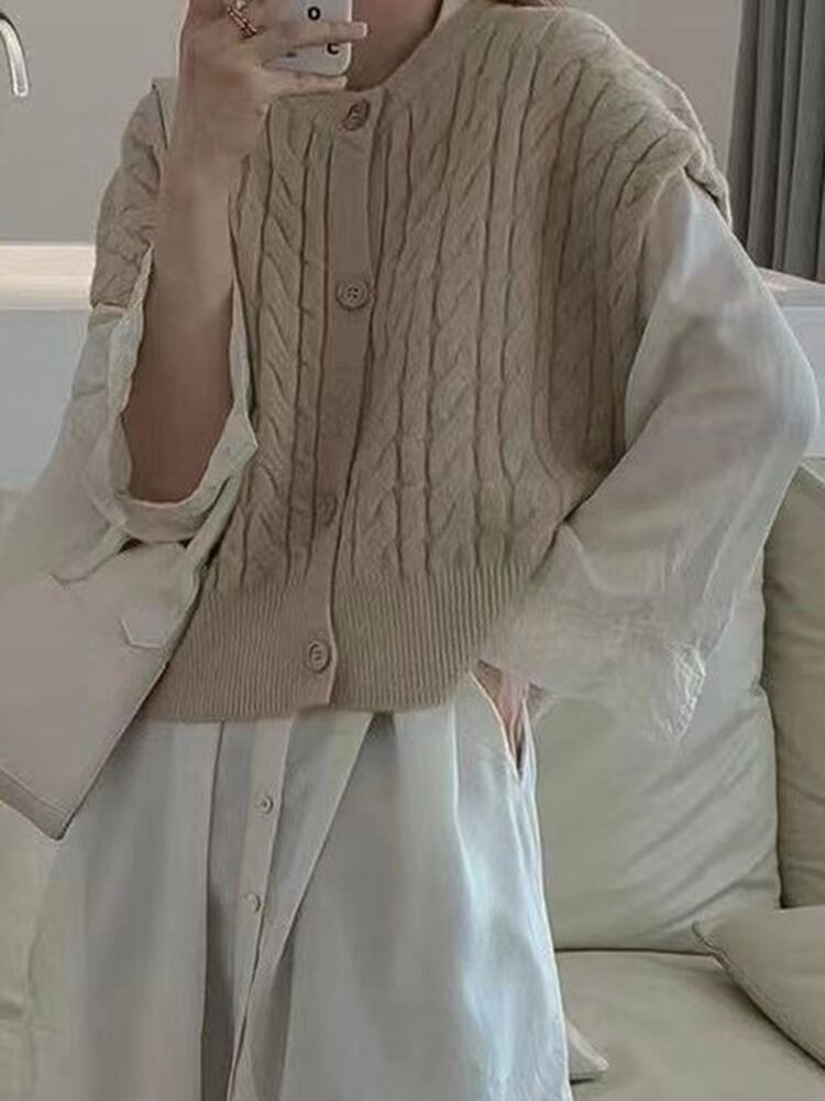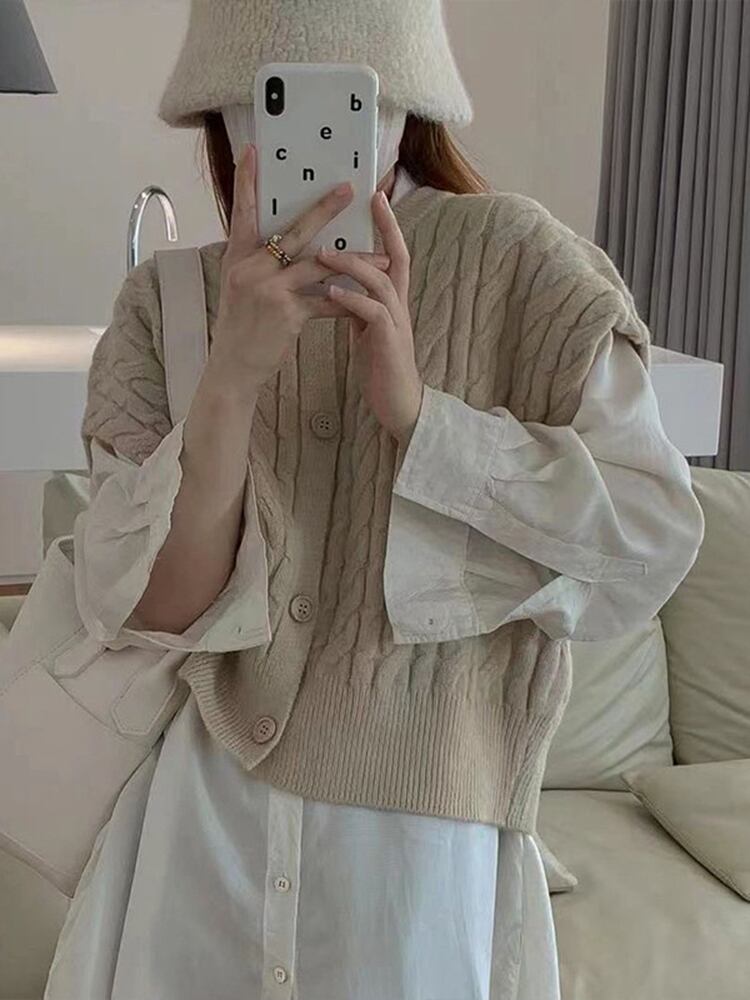 [EWQ] シングルブレスト ツイスト セーター ベスト レディース ノースリーブ カーキ ニット タンク 秋冬 タイド トップ 16U3694 オータム 秋物 ウィンター 冬物
