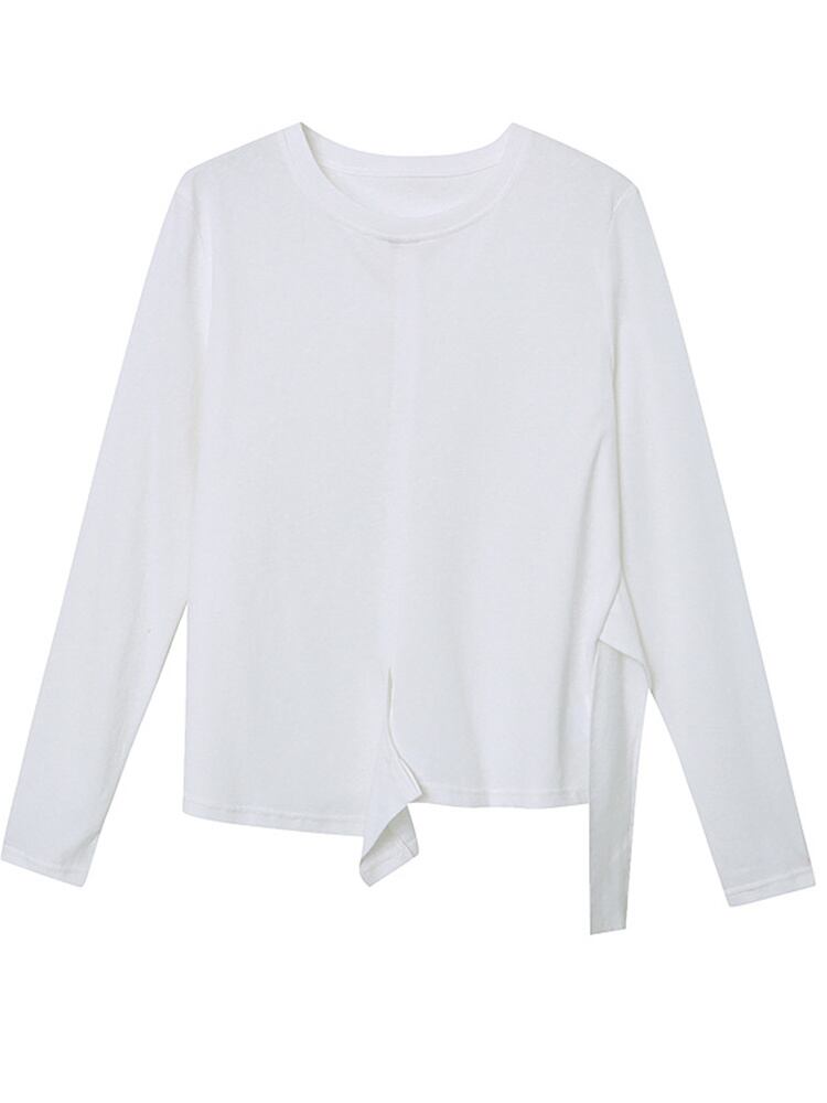[EWQ] 不規則包帯 O ネック Tシャツ長袖ルーズホワイトトップ秋潮底シャツ Tシャツ ロング オータム 秋物 Oネック