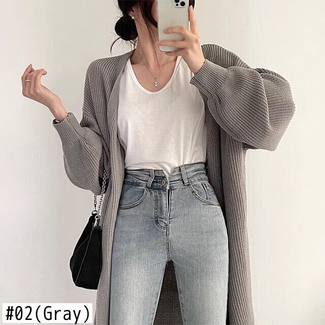 [EWQ] 長袖アプリコット カーディガン コート レディース ルーズ オープン ステッチ セーター ジャケット 秋冬 16U4184 ロング オータム 秋物 ウィンター 冬物