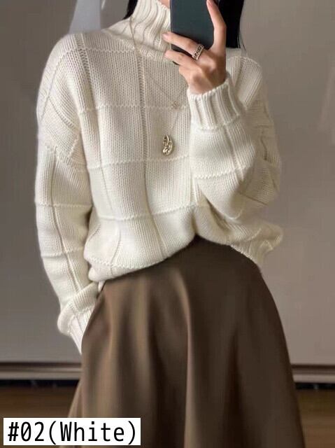 [EWQ] ホワイトタートルネックセーター長袖ルーズ弾性プルオーバーニット秋冬トップ 16U4065 ロング エラスティック 伸縮 オータム 秋物 ウィンター 冬物