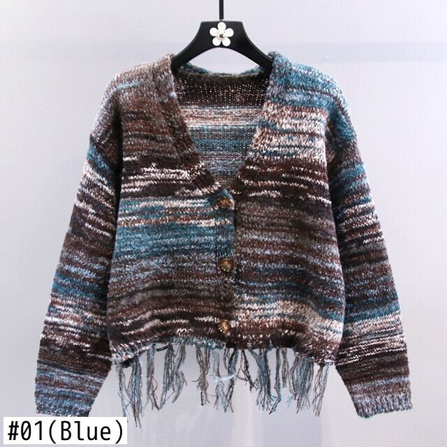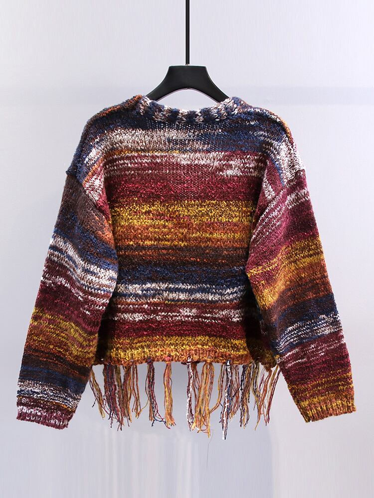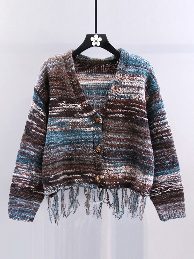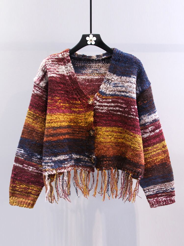 [EWQ] コントラスト ストライプ テル セーター コート レディース 長袖 シングルブレスト セーター ジャケット 秋冬 6U3751 ロング オータム 秋物 ウィンター 冬物