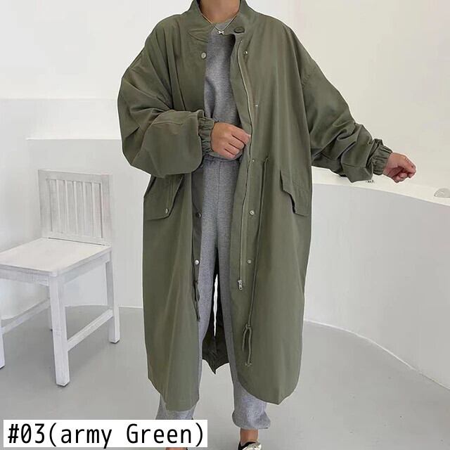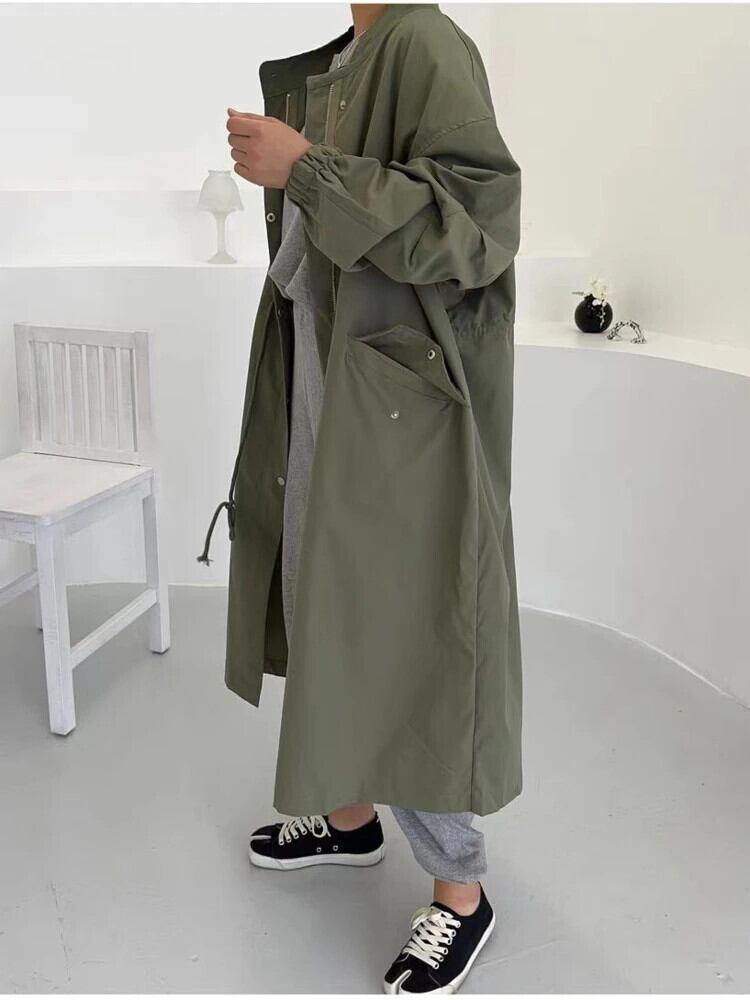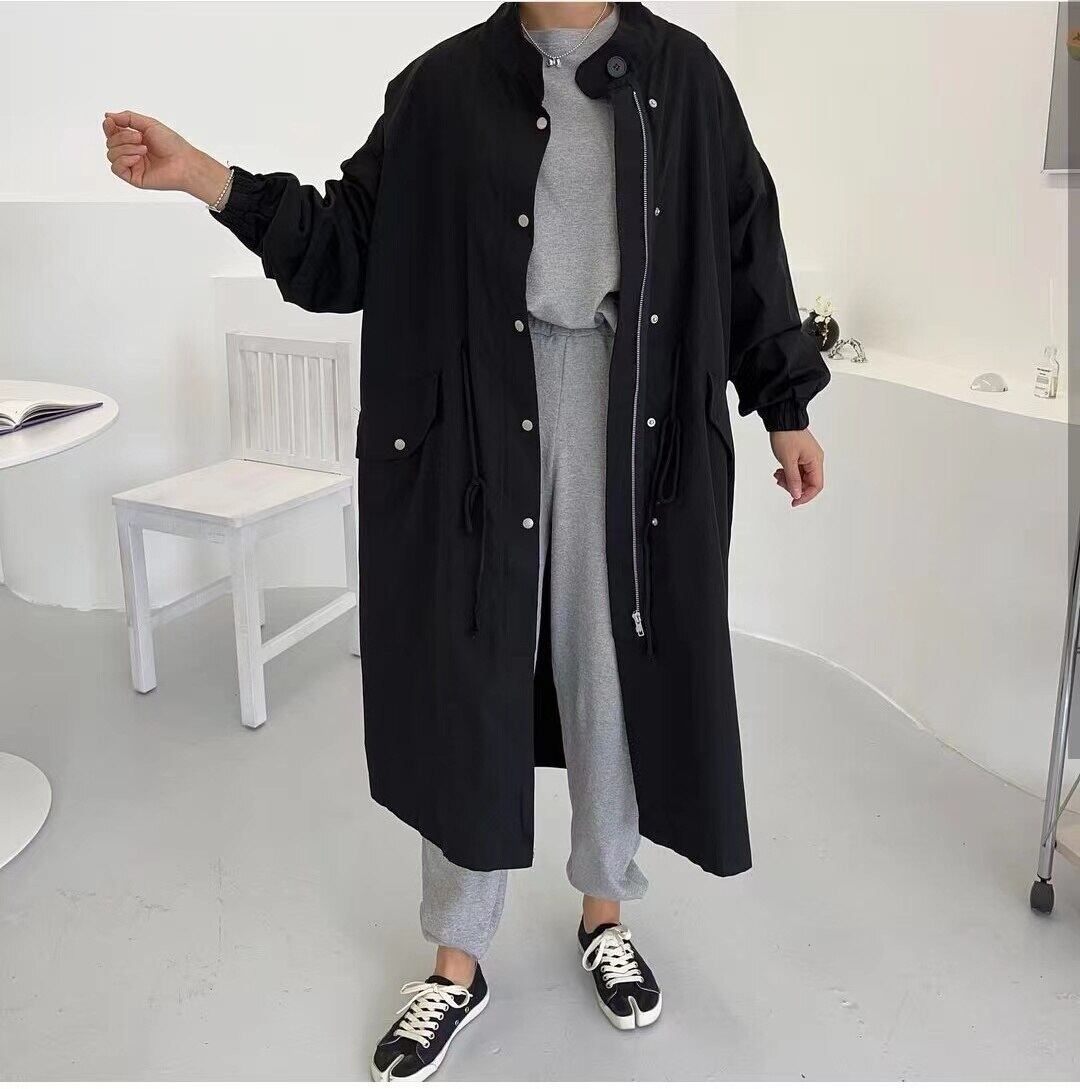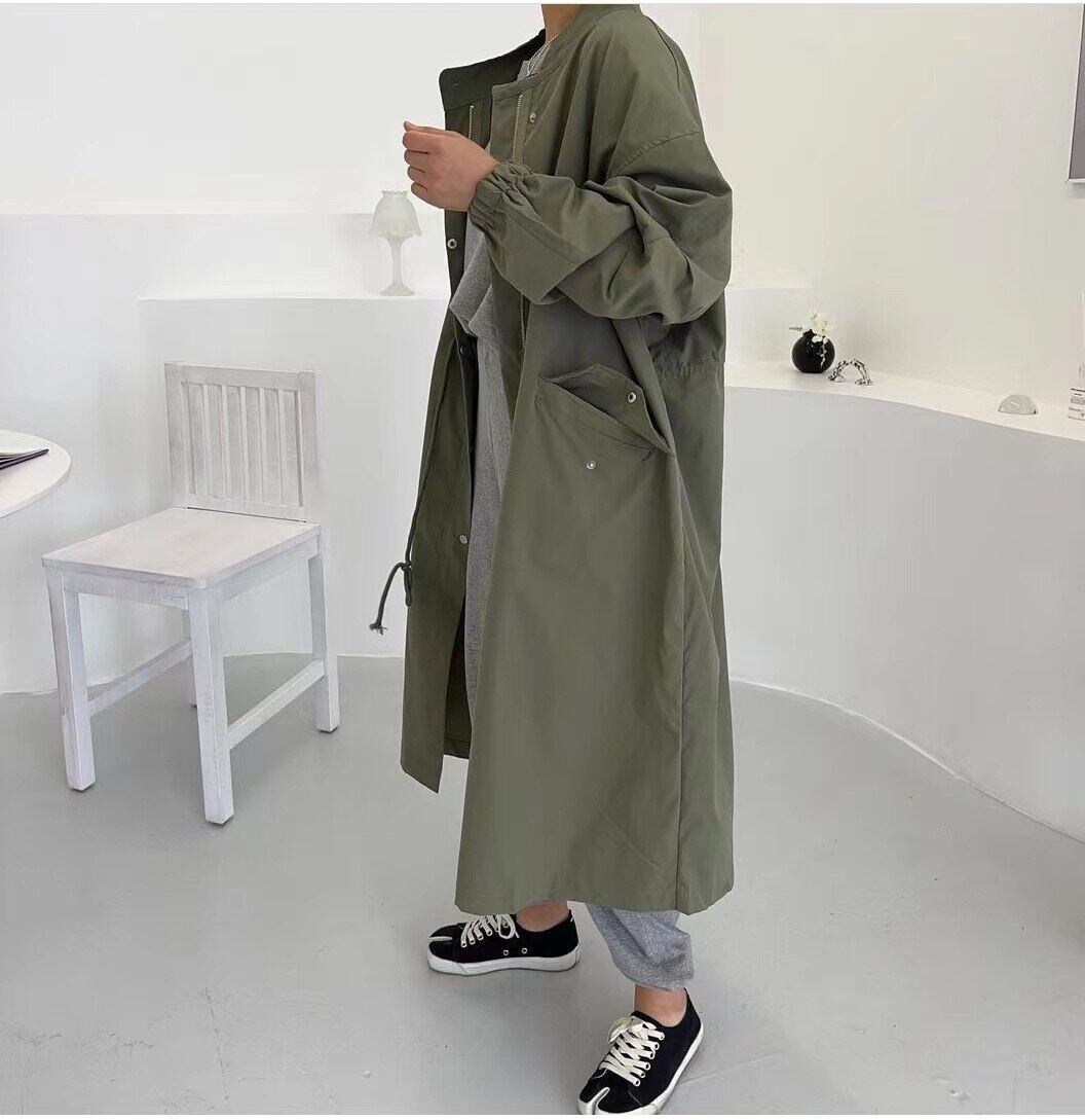 [EWQ] 秋レトロスタンドカラーシングルブレストルーズトレンチコート長袖ジッパー防風コート ロング オータム 秋物