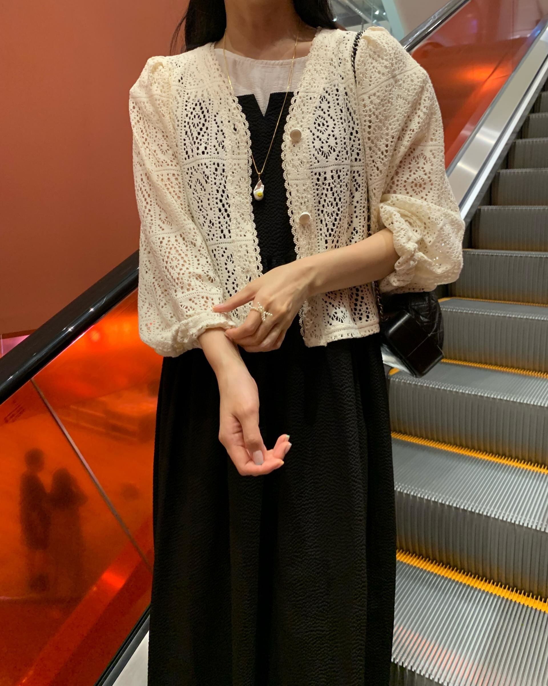 [EWQ] フックフラワー中空アウト秋薄いシャツランタンスリーブルーズ透視レース潮トップ オータム 秋物 フラワーデザイン