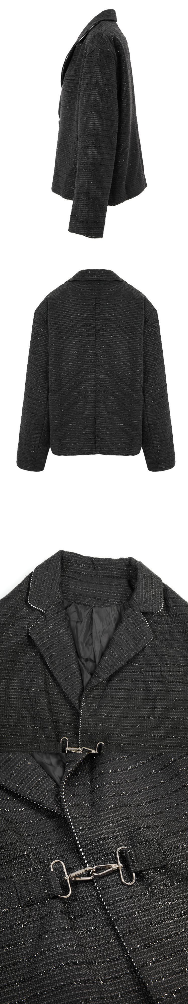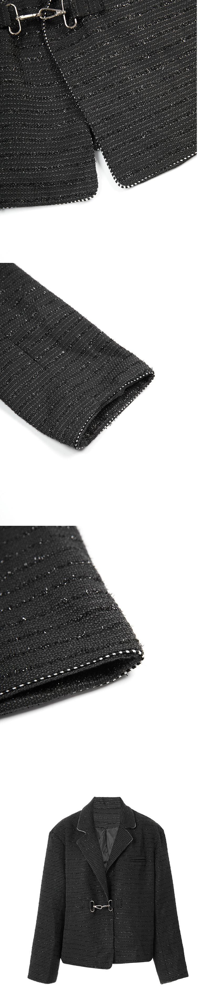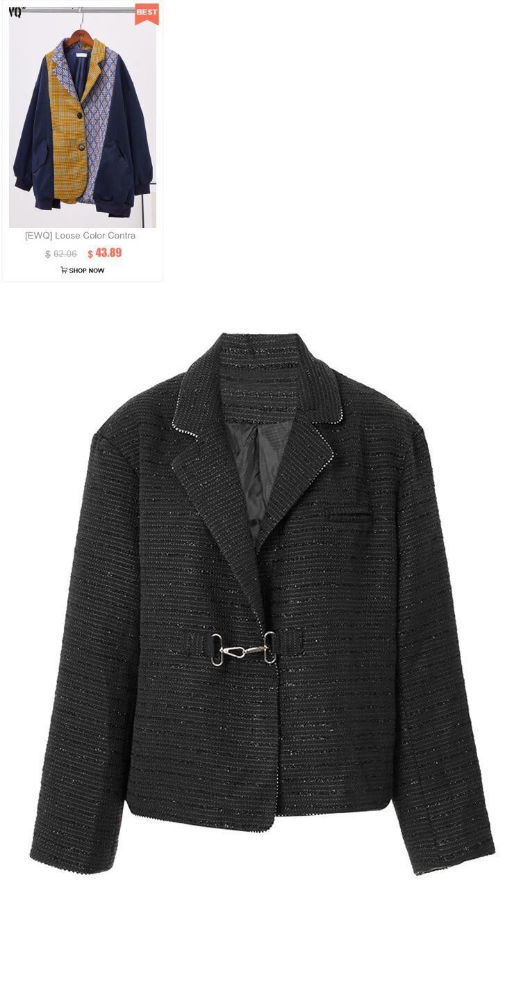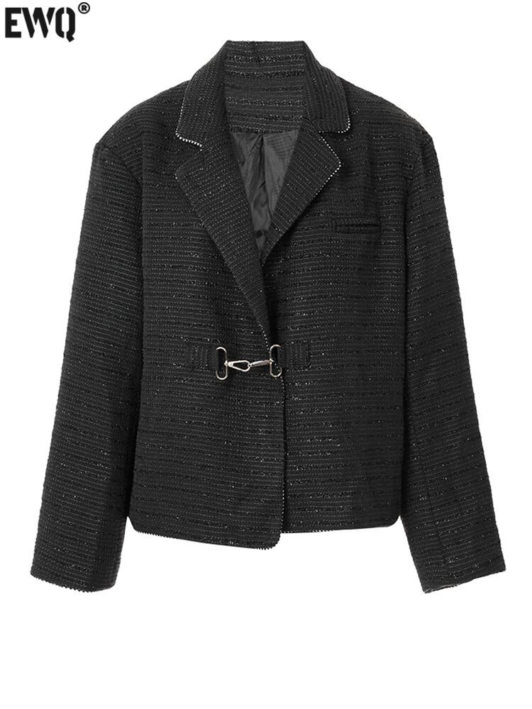 [EWQ] ブラックバックルジャケットビッグサイズラペル長袖レディースコート秋春ツイードアウター ロング スプリング 春物 オータム 秋物