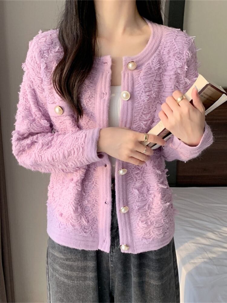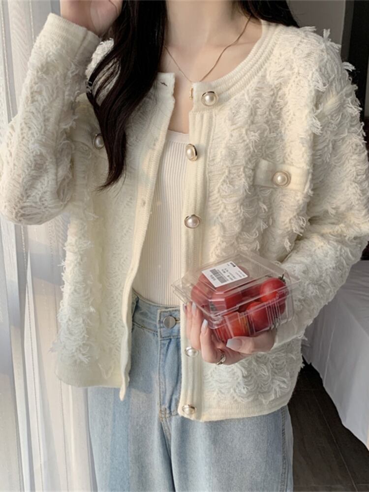 [EWQ] 甘いテルカーディガンコート長袖シングルブレストセータージャケット秋冬潮ニットコート ロング 大人ガーリー スウィート キュート カジュアル オータム 秋物 ウィンター 冬物