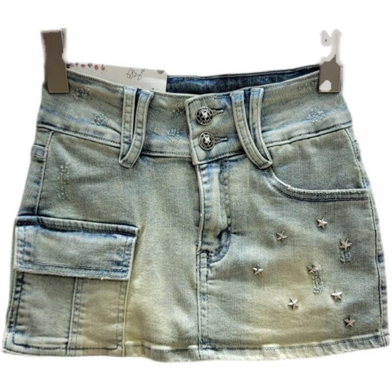 [EWQ] ラップヒップスター装飾デニムスカートコントラストカラーポケットパッチワークセクシーミニスカート夏潮 サマー 夏物