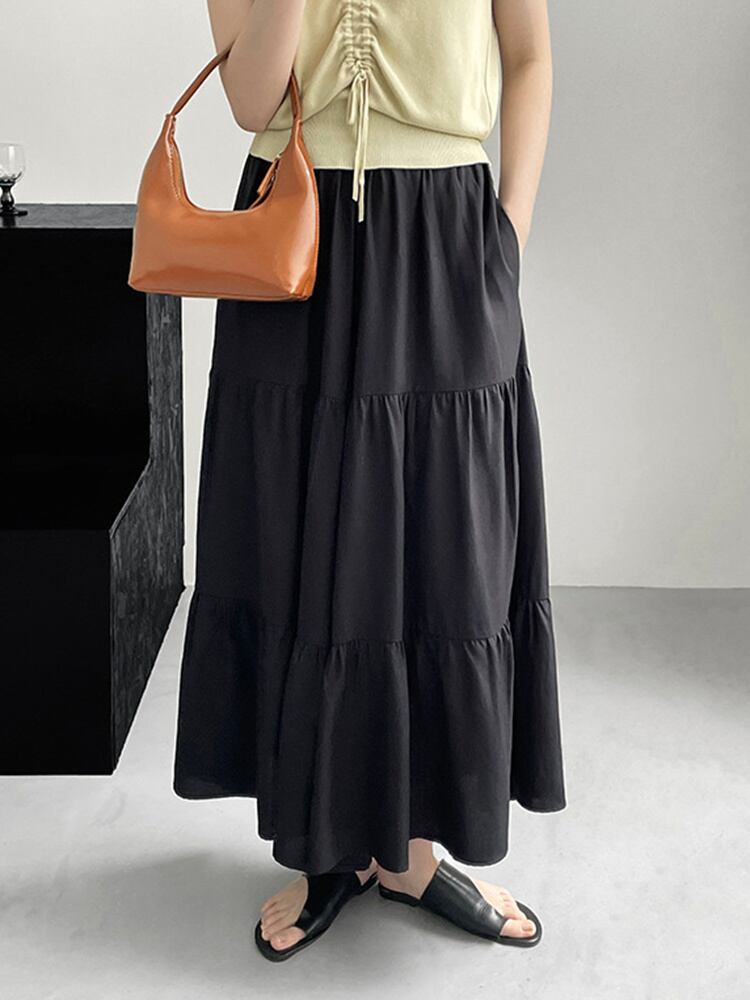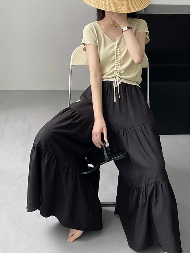[EWQ] ウエストゴムシャーリングゆったり黒パンツ レディース パッチワーク オールマッチ 秋 16O307 ブラック エラスティック 伸縮 オータム 秋物