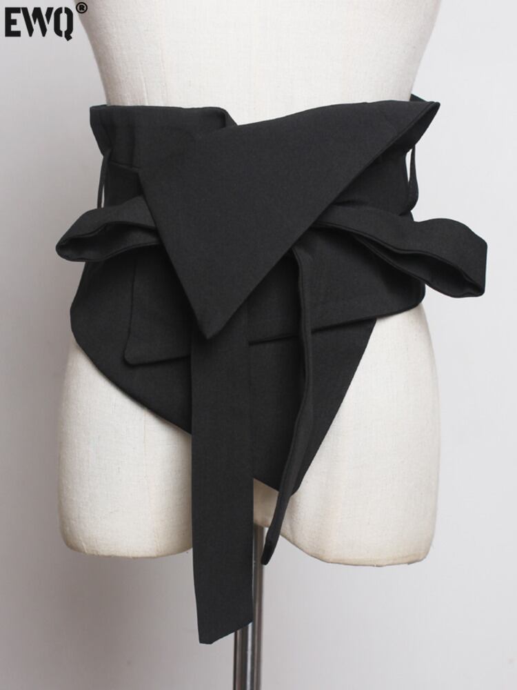 [EWQ] ウエストバンド幅広装飾的ドレスとシャツで包まれた黒ウエストベルト秋潮服 16U3731 ブラック オータム 秋物 ハーネス