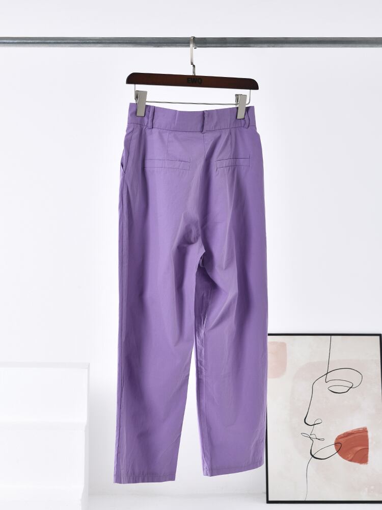 [EWQ] ワンボタンワイドレッグパンツプリーツウエストルーズパンツ秋潮服 オータム 秋物 ワイドパンツ