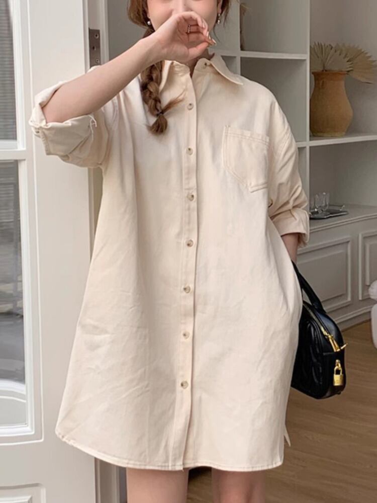 [EWQ] デニムシャツ レディース 長袖 シングルブレスト ポケット パッチ ゆったり 秋冬 潮トップス 16U3733 ロング オータム 秋物 ウィンター 冬物