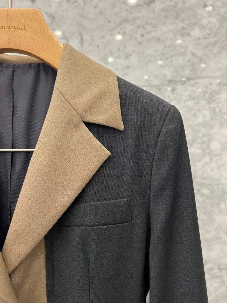 [EWQ] ノッチパッチコントラストブレザーコート長袖ボタン装飾気質スーツジャケット秋冬 16U4253 ロング オータム 秋物 ウィンター 冬物