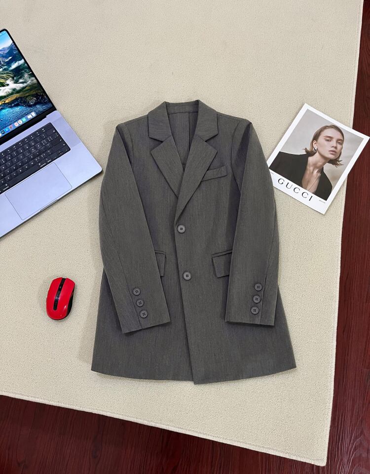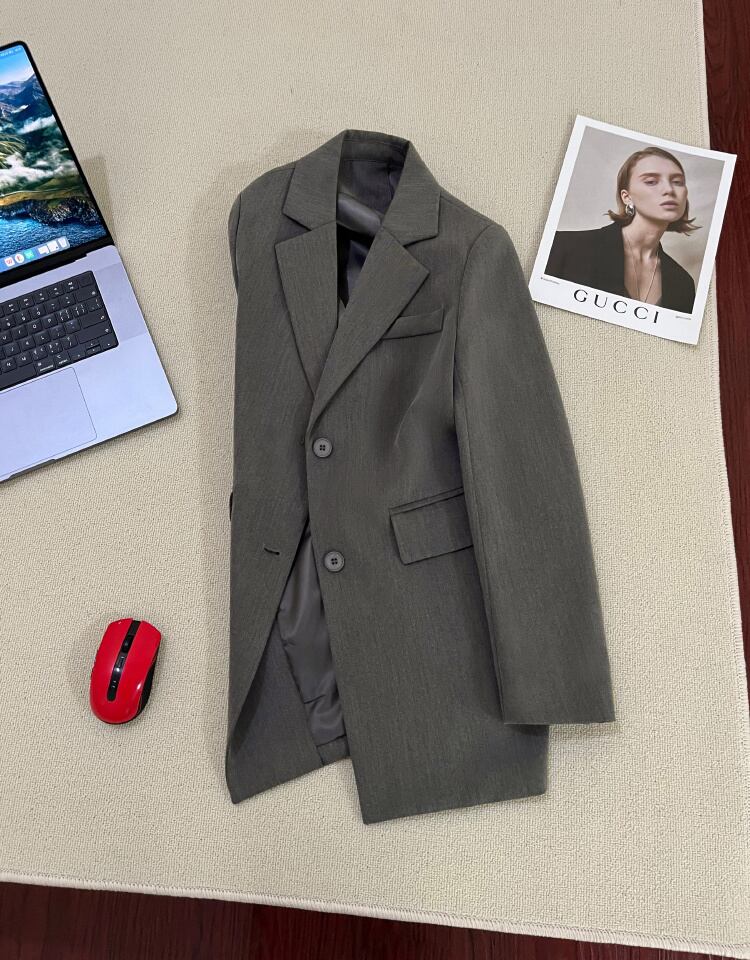 [EWQ] ブレザーコートバックボタン装飾ポケットパッチワーク長袖スーツジャケット秋潮ブレザー 229 ロング オータム 秋物