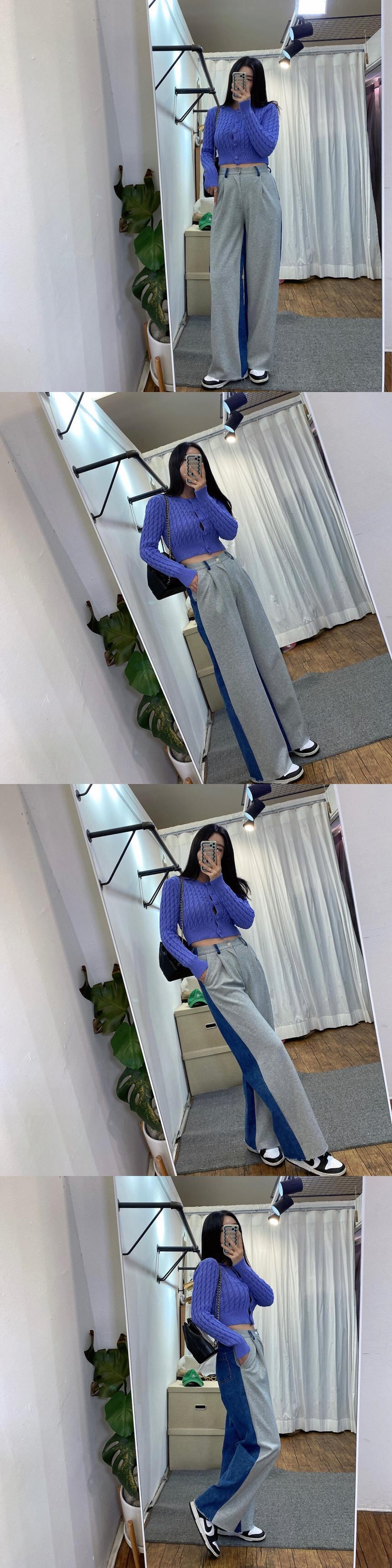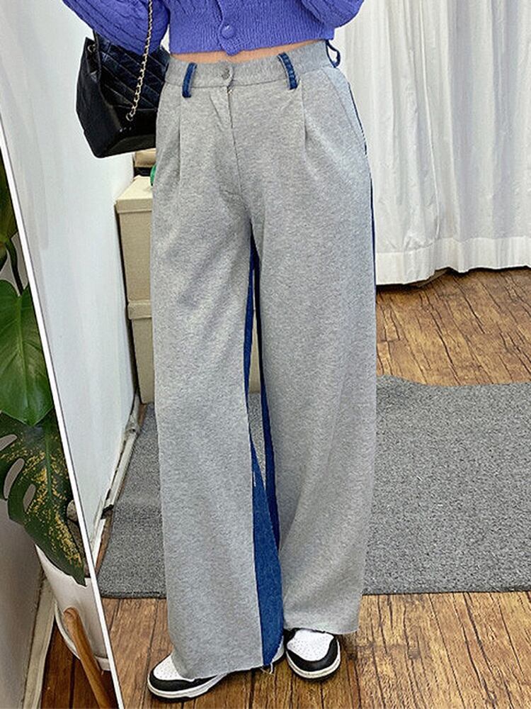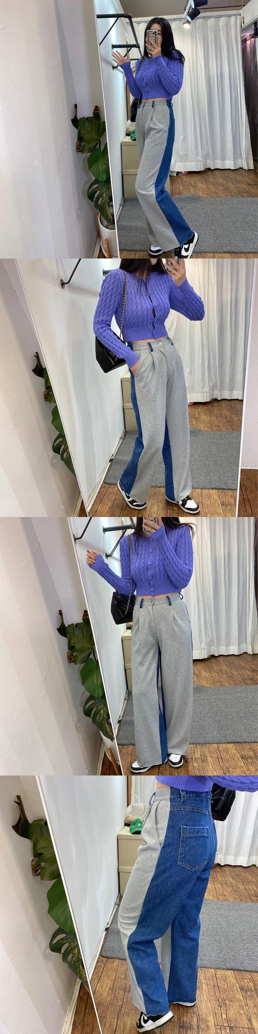 [EWQ] パッチワークデニムパンツウエストプリーツポケットストリートジーンズ夏潮ワイドレッグパンツ 16U1204 サマー 夏物 ワイドパンツ
