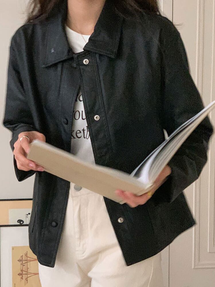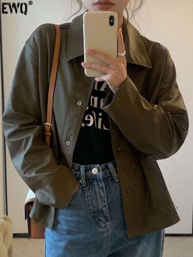 [EWQ] ストリート PU レザージャケットシングルブレストソリッドカラールーズコート秋潮生き抜く 16U1019 オータム 秋物