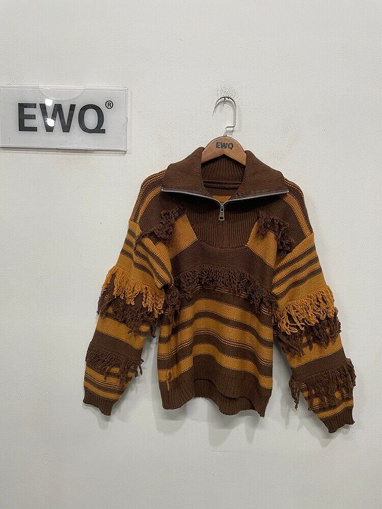 [EWQ] テルルーズセーターストライプニットフラワートップ美しいテルプルオーバーニット長袖ジッパー厚く暖かい ロング フラワーデザイン