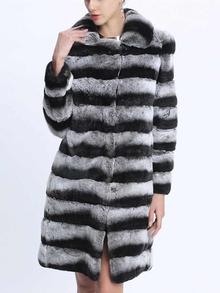 [EWQ] ストライプ毛皮コートミンクカシミヤ冬暖かい厚い長袖シングルブレストソフトオーバーガーメント秋 6U4949 ロング オータム 秋物 ウィンター 冬物