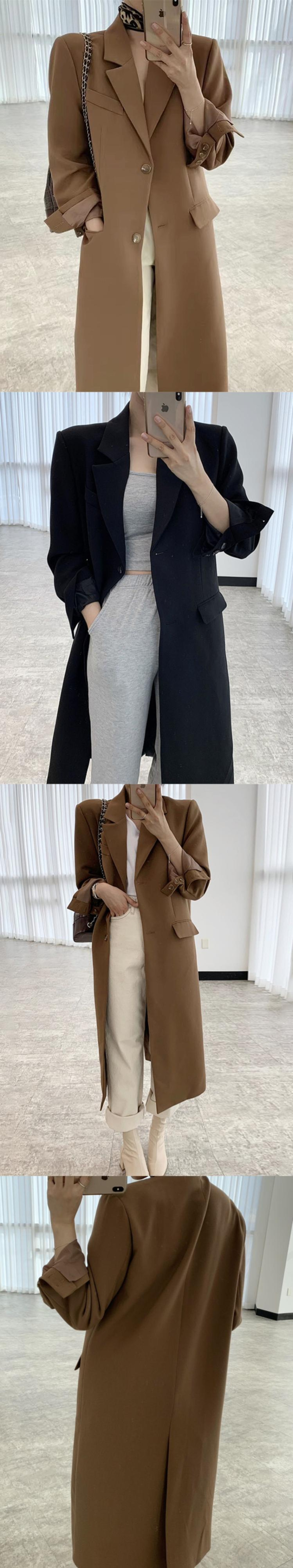 [EWQ] ダブルポケット長ブレザーコートバックスプリットルーズ長袖スーツジャケット秋冬潮 16U3812 ロング オータム 秋物 ウィンター 冬物