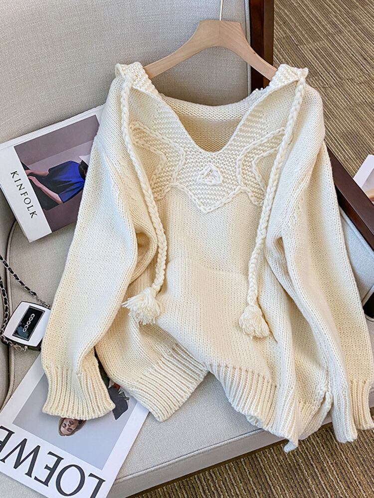 [EWQ] コントラストカラーストライプマッチングカラーフリンジ長袖プルオーバー冬暖かいセーター秋 16O535 ロング ウィンター 冬物