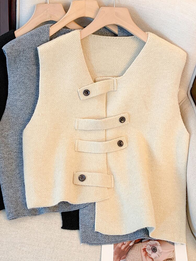 [EWQ] スタイル不規則ニットベスト潮トップスレースアップバックルセーター秋トップス美しい服 U4416 オータム 秋物