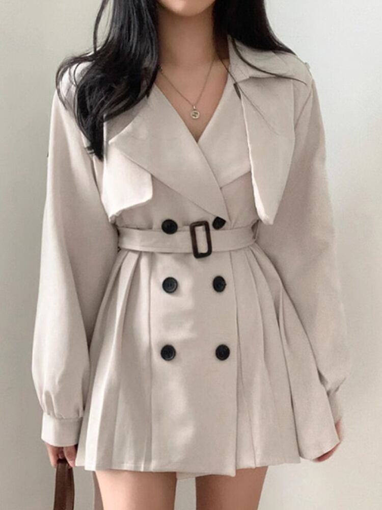 [EWQ] ベルト付き ダブルブレスト ブレザー コート レディース ノッチプリーツ パッチワーク スーツ ジャケット 秋冬 16U3857 オータム 秋物 ウィンター 冬物 ハーネス