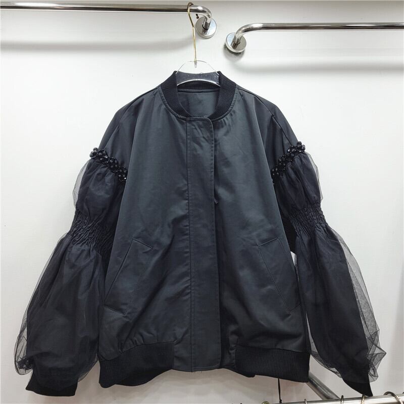 [EWQ] 長袖メッシュパッチワークジャケットビッグサイズルーズジッパージャケットコート秋冬服 16U4706 ロング オータム 秋物 ウィンター 冬物