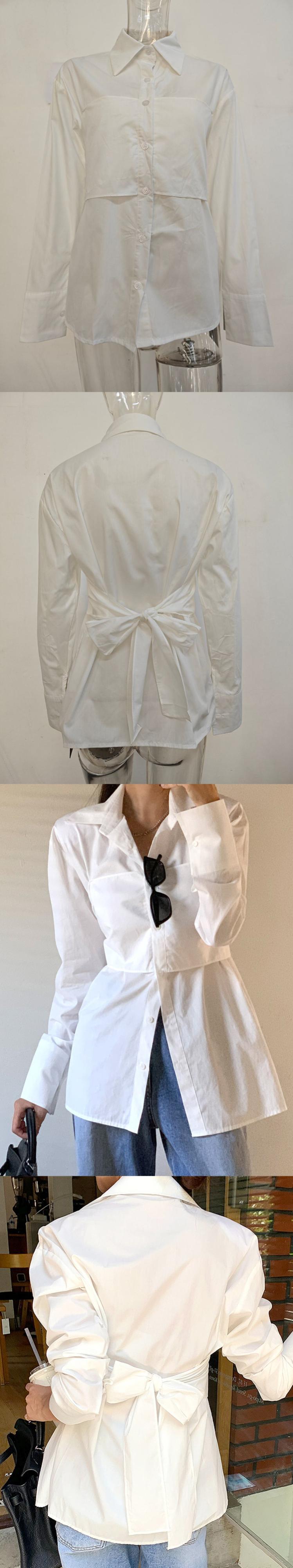 [EWQ] 包帯蝶ネクタイ白シャツ長袖オフィスレディ秋冬潮 16U4035 ロング ホワイト リボン オータム 秋物 ウィンター 冬物 会社 学校 通勤や通学にも