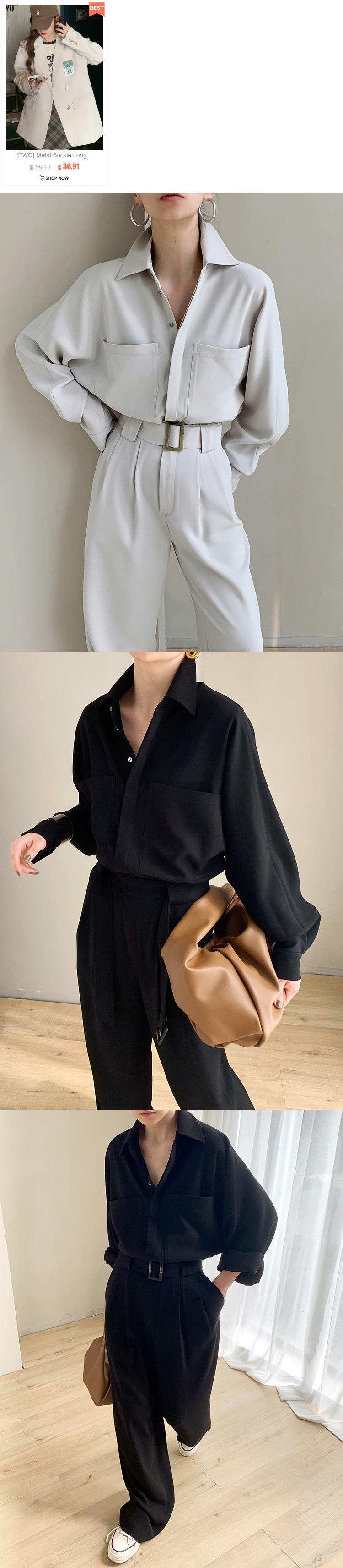 [EWQ] 気質包帯ジャンプスーツ長袖ビッグポケットオフィスレディジャンプスーツ秋冬 16U4460 ロング オータム 秋物 ウィンター 冬物 会社 学校 通勤や通学にも