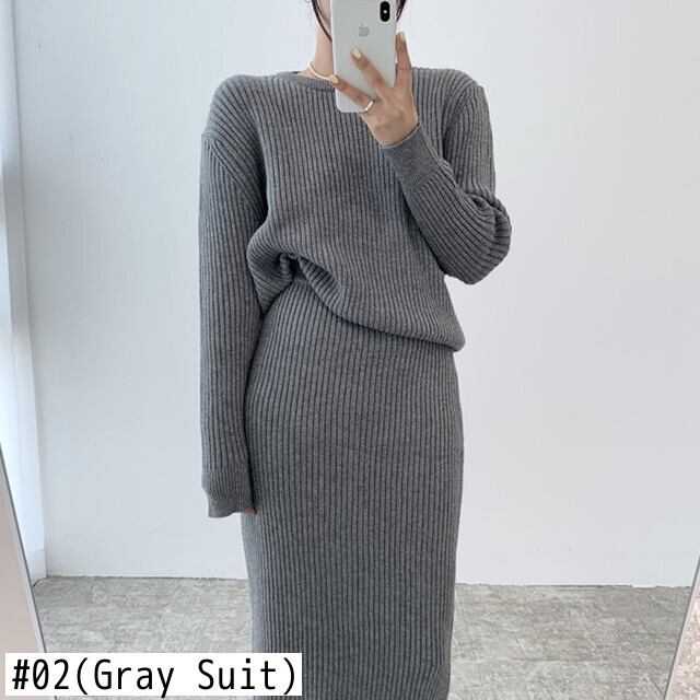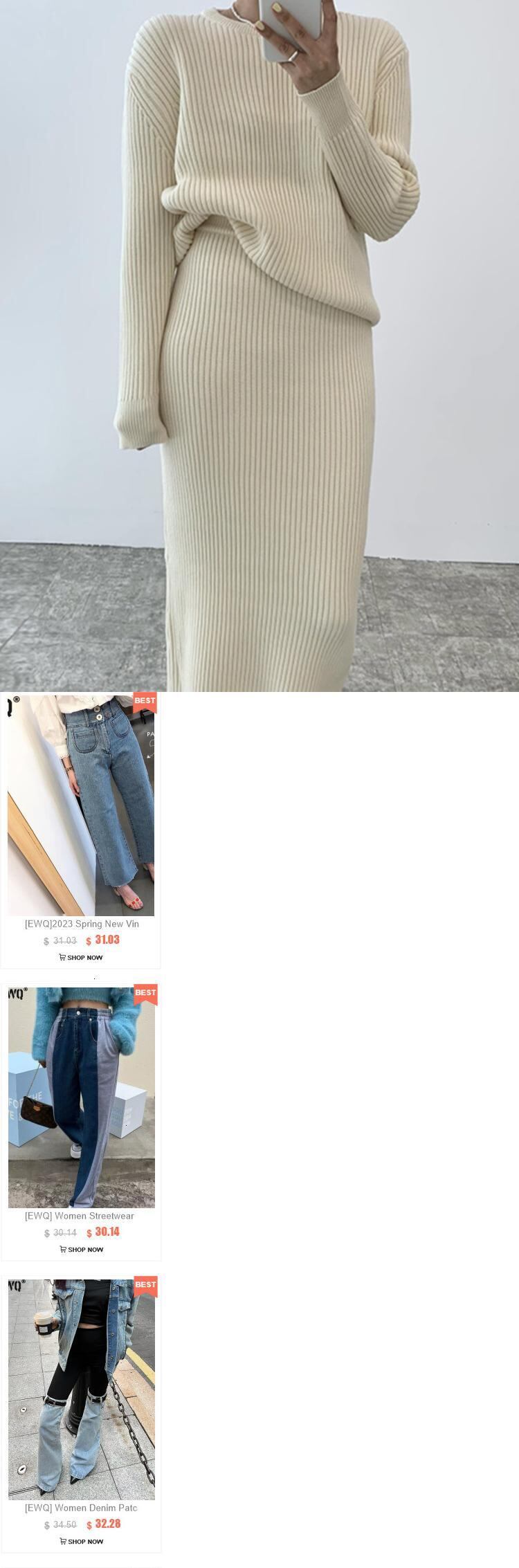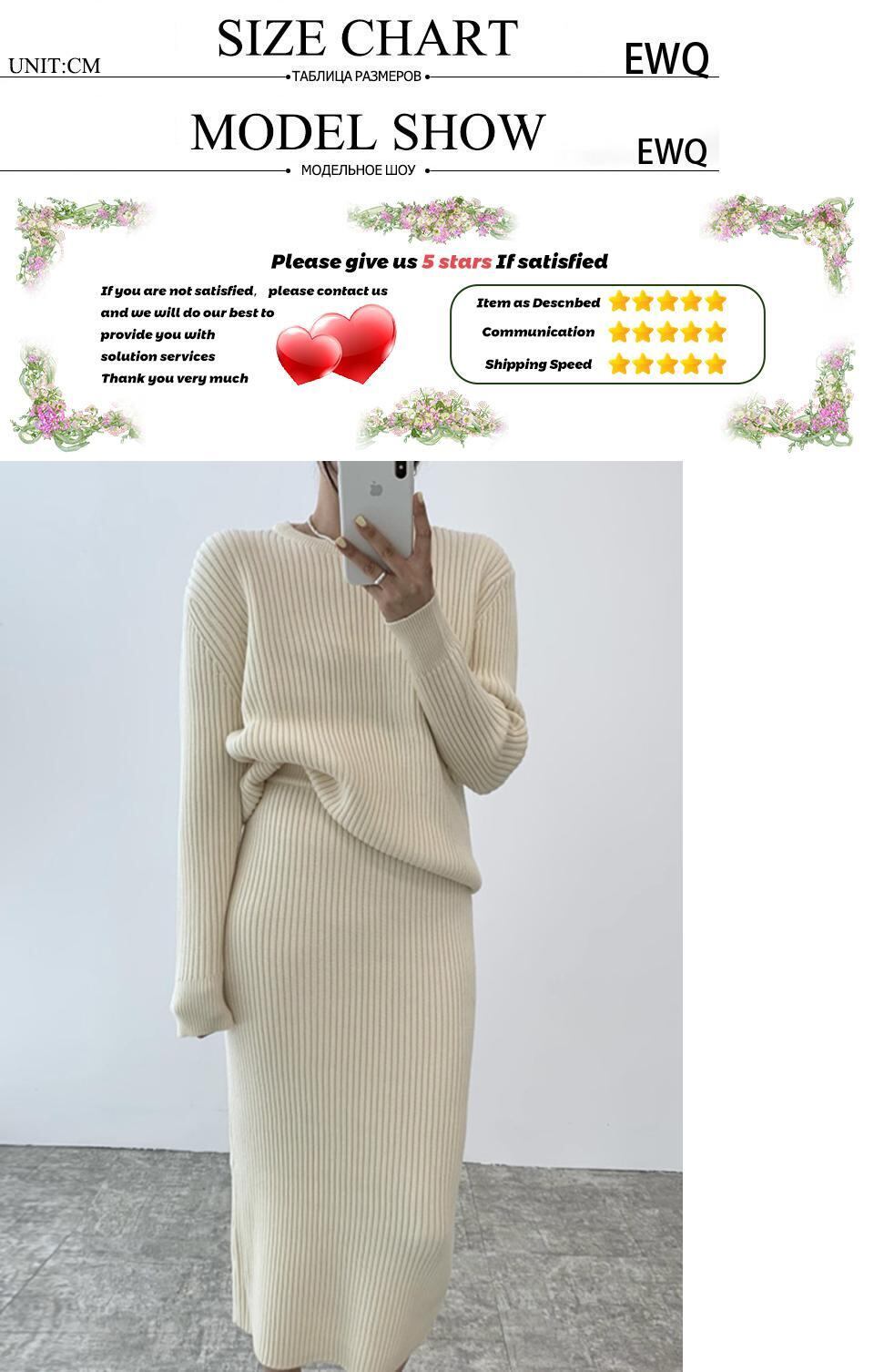 [EWQ] ニット 2 点セット長袖ルーズセーター + ウエスト弾性ニットスカート秋冬スーツ 16U4096 ロング エラスティック 伸縮 オータム 秋物 ウィンター 冬物