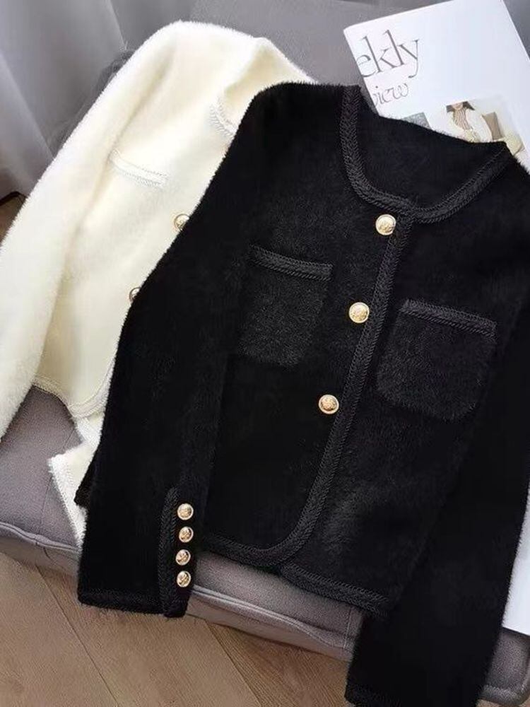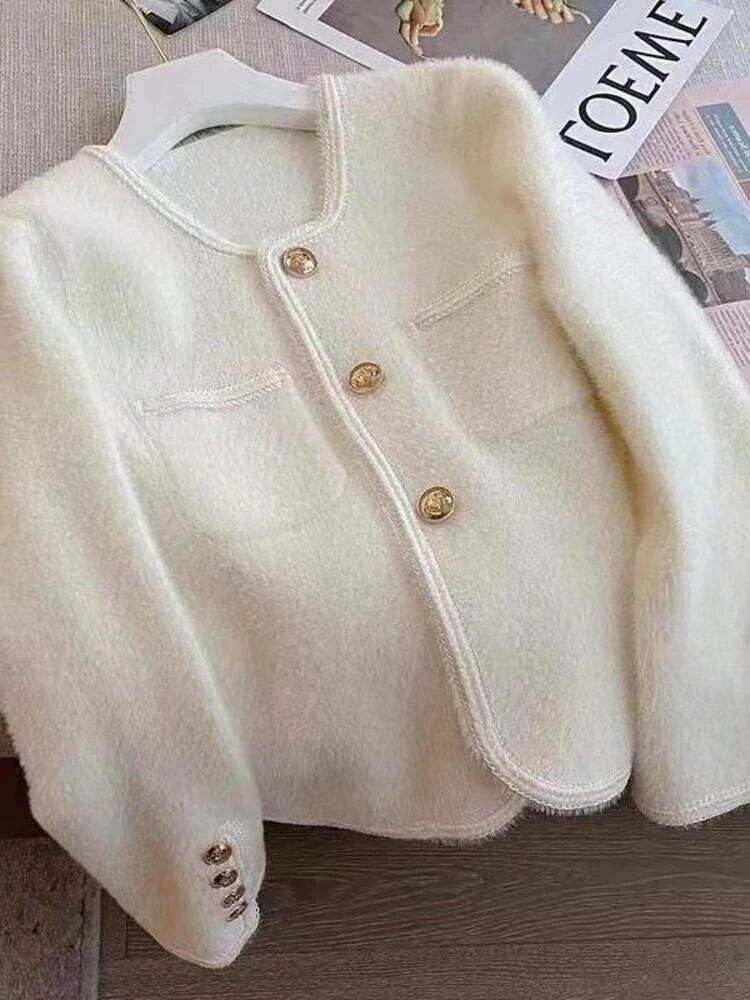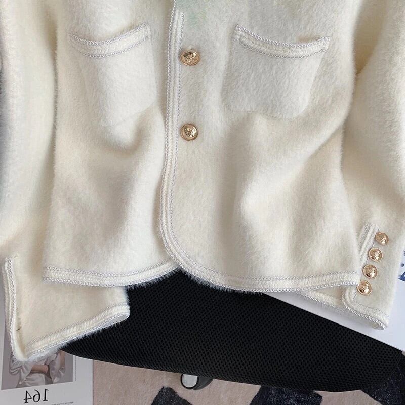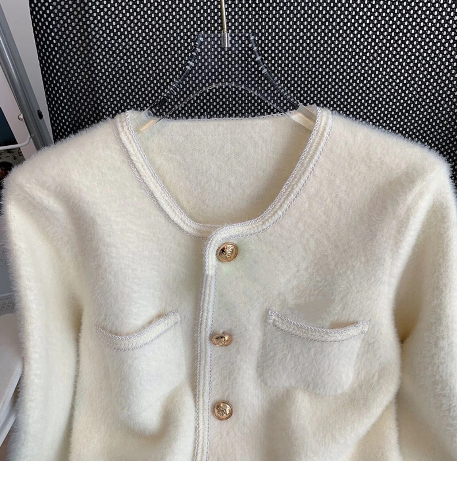 [EWQ] スイート セーター コート 秋冬 Clic スタイル ゴールド バックル ホワイト ミンク ファー ニット カーディガン 美しい O04312 大人ガーリー スウィート キュート カジュアル オータム 秋物 ウィンター 冬物
