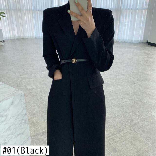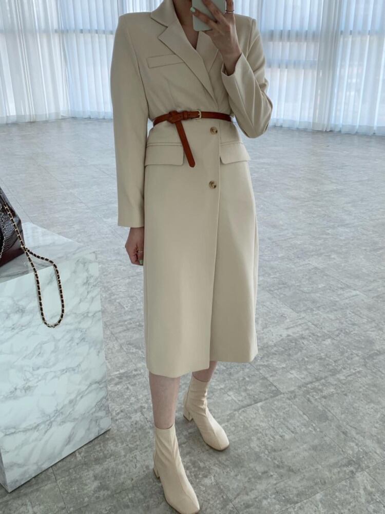 [EWQ] 2 ボタン高級ブレザーコートベルト付き長袖パッチワークルーズスーツジャケット秋冬 16U4241 ロング オータム 秋物 ウィンター 冬物 ハーネス