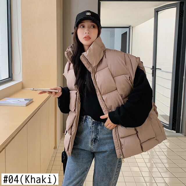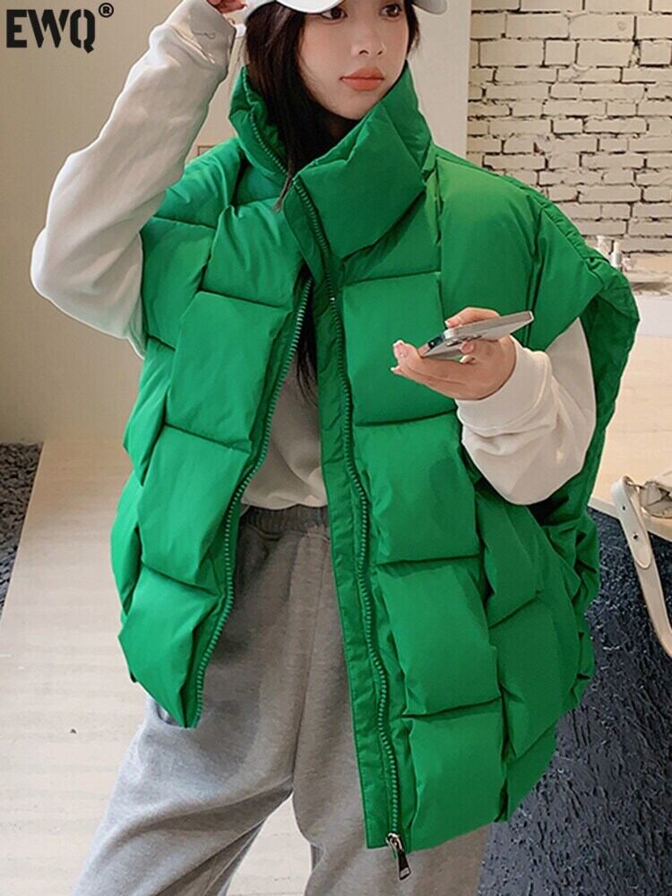 [EWQ] ミニマリスト スタンドネック ダウン コットン チョッキ 秋冬 ノースリーブ 保温織物 ジッパー ベスト 16U3669 オータム 秋物 ウィンター 冬物