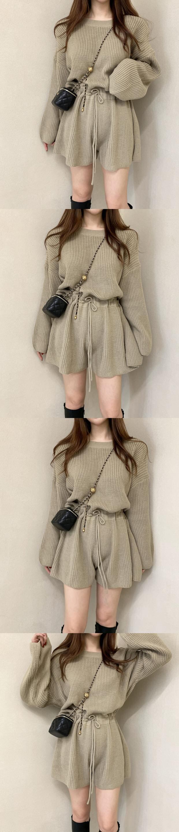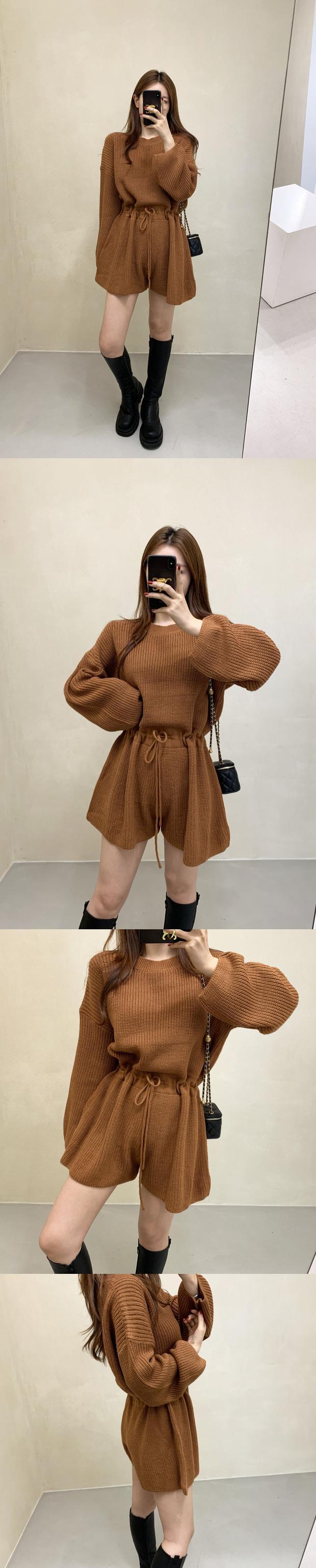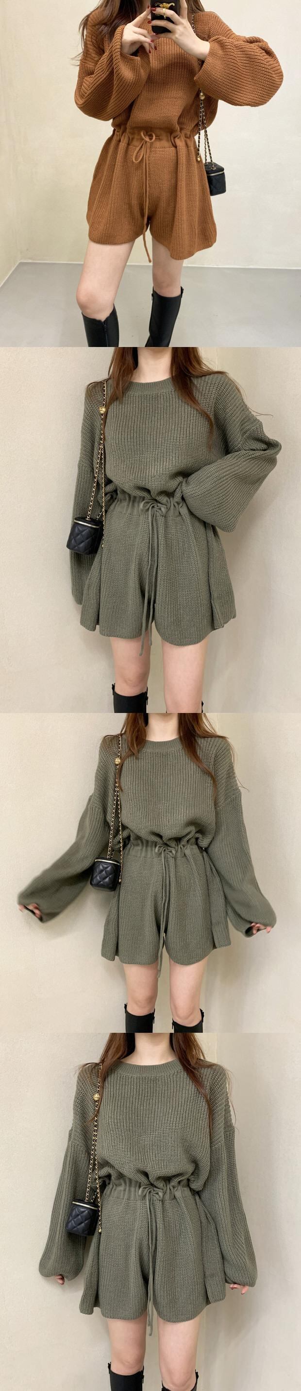 [EWQ] ワイドレッグニットショートジャンプスーツ長袖ルーズレースアップ遊び着秋冬服 16U4695 ロング オータム 秋物 ウィンター 冬物 ワイドパンツ