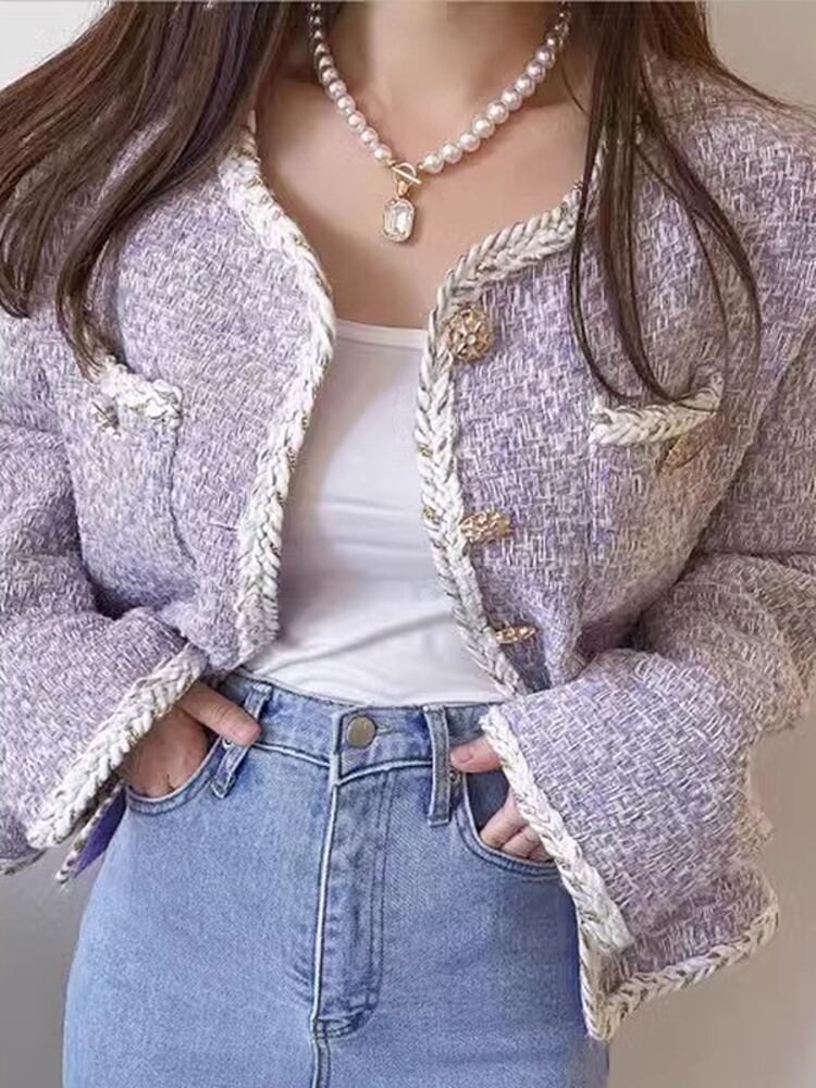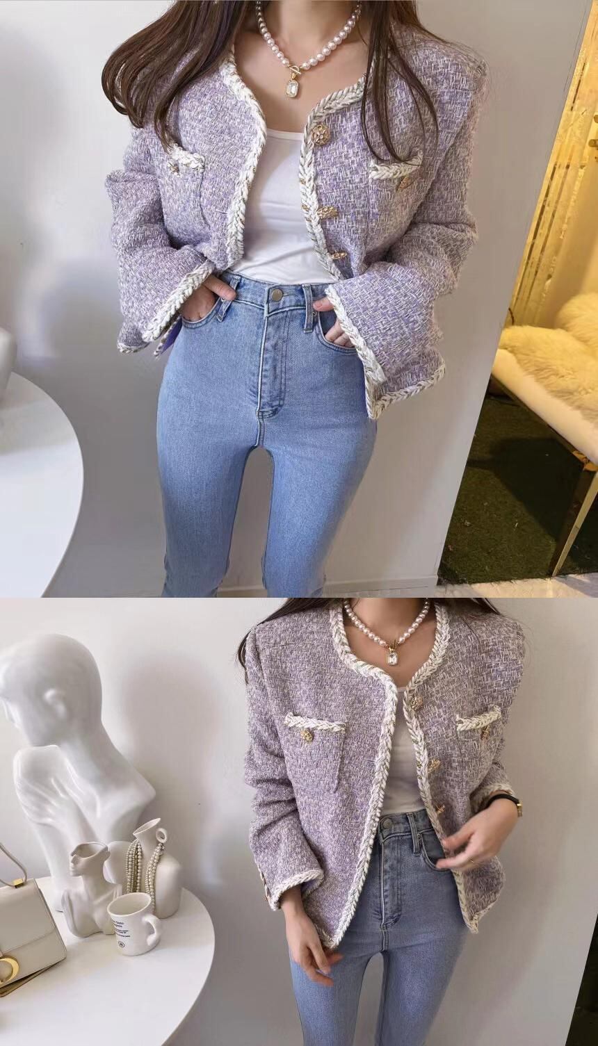 [EWQ] Sweet Women パープル ツイード ジャケット シングルブレスト ポケット パッチワーク ルーズ ジャケット コート 秋冬 アウター 16U4934 大人ガーリー スウィート キュート カジュアル オータム 秋物 ウィンター 冬物