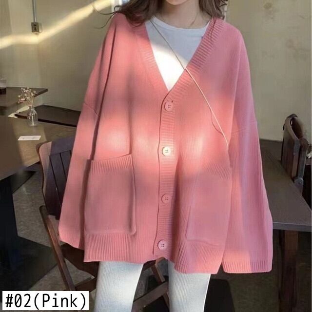 [EWQ] ルーズシングルブレストカーディガンコート長袖秋潮セータージャケット V ネックニットコート ロング オータム 秋物 Vネック