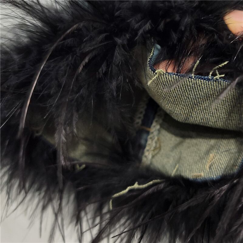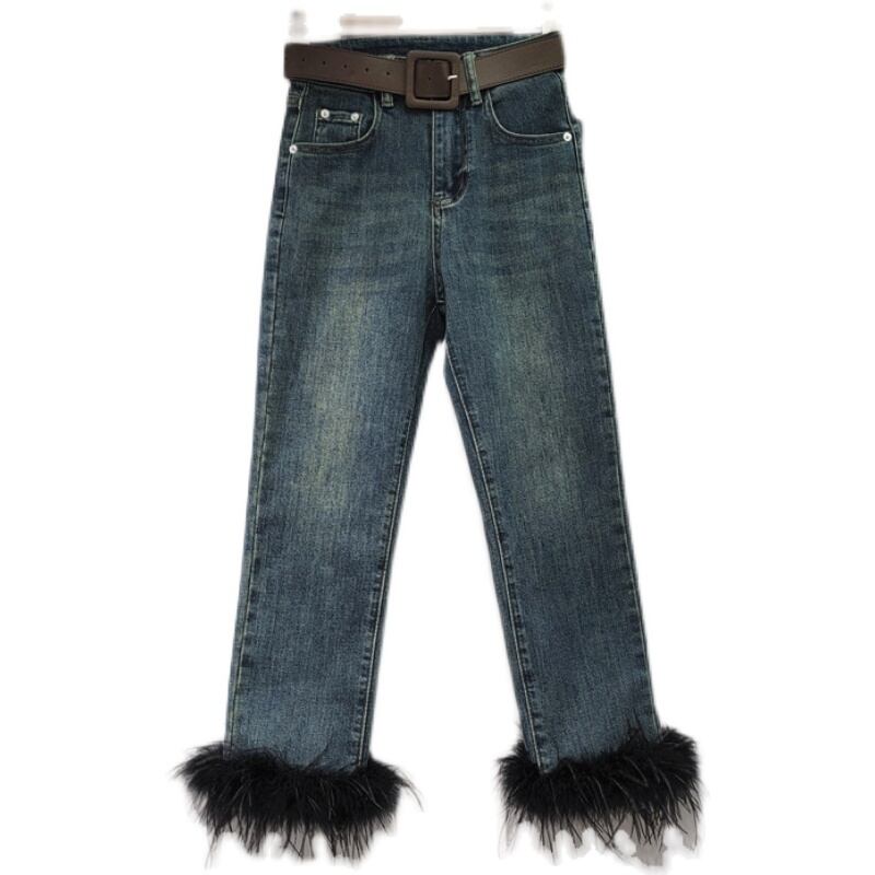 [EWQ] 裾フェザースプライシングペンシルジーンズストリートウエストポケットデニムパンツ秋冬潮服 6U3959 オータム 秋物 ウィンター 冬物