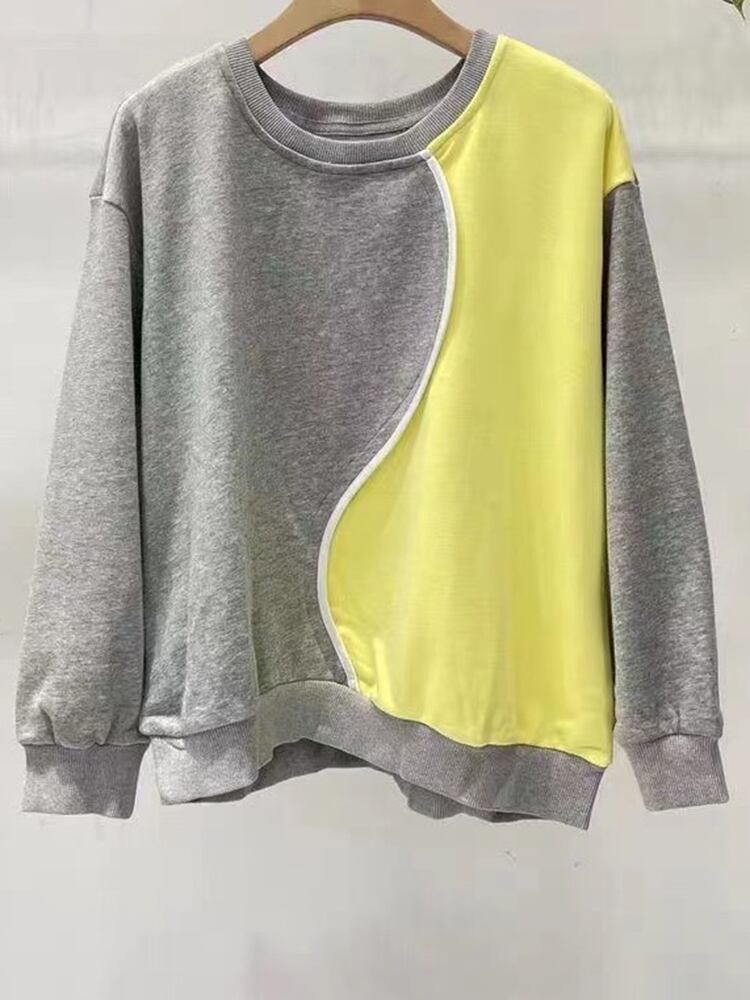 [EWQ] O ネックパッチワークコントラストスウェットシャツ長袖ルーズプルオーバートップ秋冬 16U4111 ロング オータム 秋物 ウィンター 冬物 Oネック