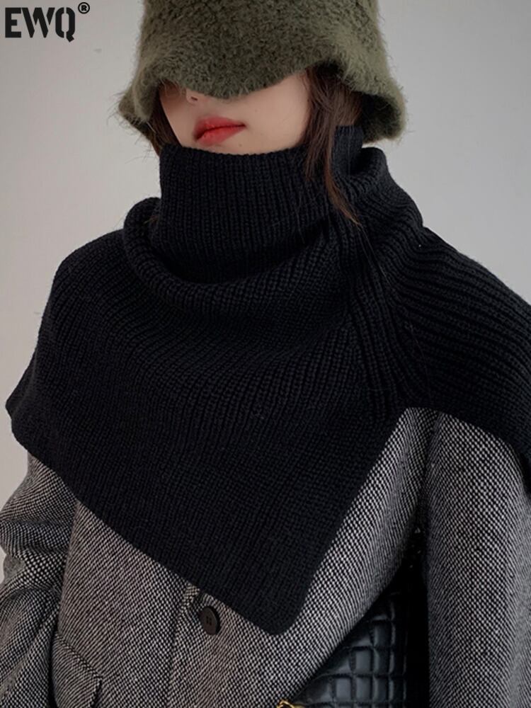 [EWQ] 不規則黒ニットショールセーター秋冬潮ノースリーブプルオーバーニットトップ 16U4874 ブラック オータム 秋物 ウィンター 冬物