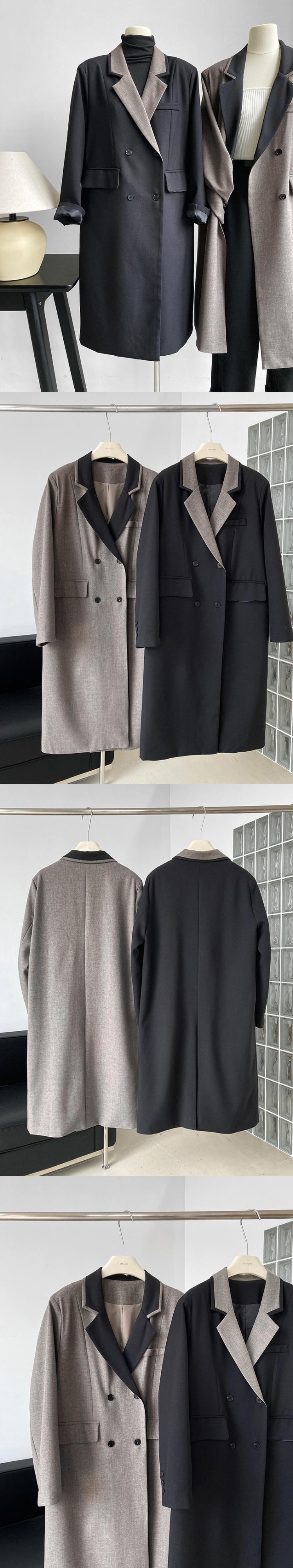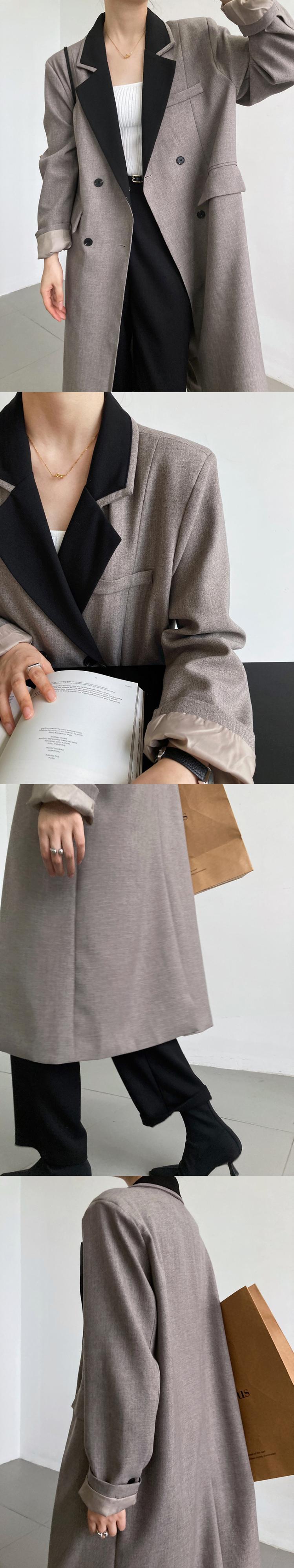 [EWQ] 長袖ロングコートレディーススーツコントラストカラーシングルブレストルーズオーバーコート秋 16Y361 オータム 秋物