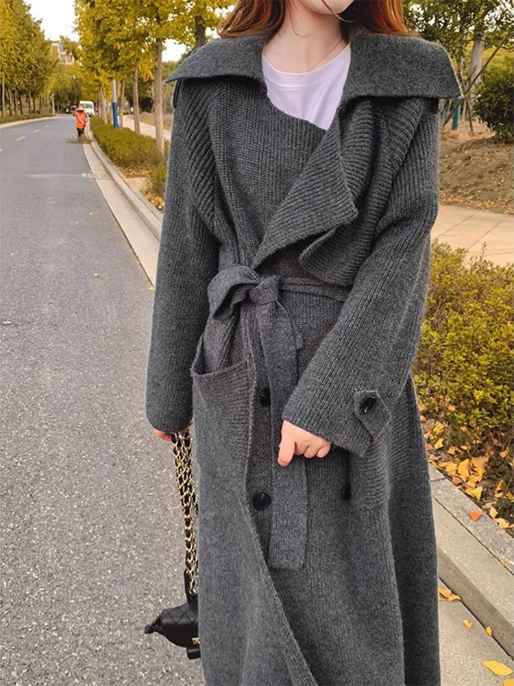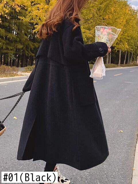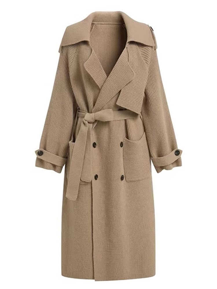 [EWQ] 秋冬包帯丈カーディガンコート潮ダブルブレストルーズポケットスプライシングセータージャケット 16U3685 オータム 秋物 ウィンター 冬物