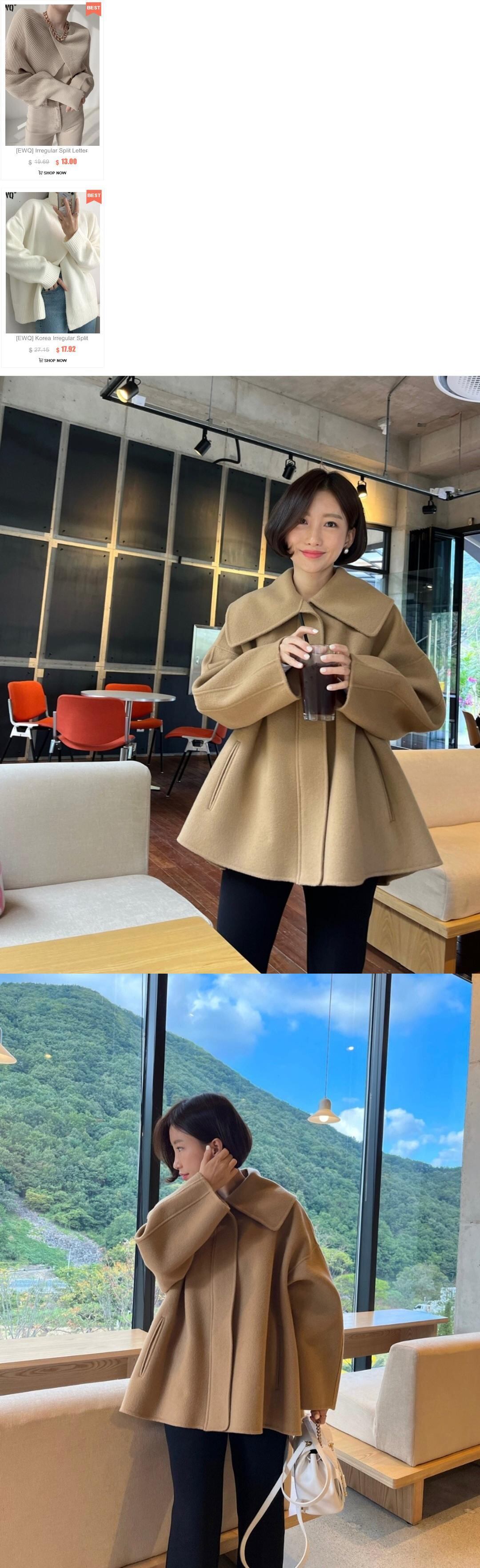 [EWQ] シングルブレストウールコート長袖ルーズウールジャケットカーキ厚手服秋冬 16U4443 ロング オータム 秋物 ウィンター 冬物