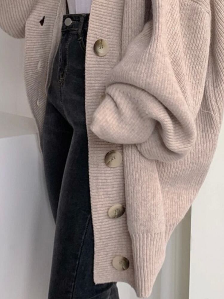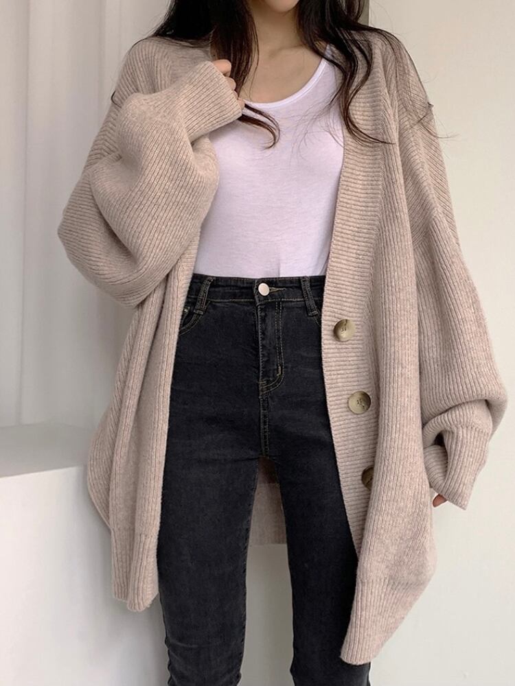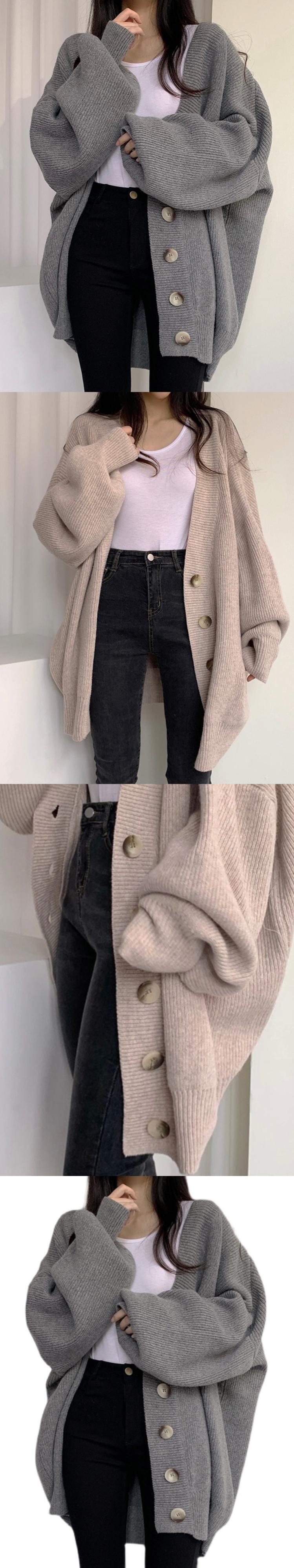 [EWQ] V ネックルーズセータージャケット長袖シングルブレストカーディガンコート秋冬 16U3668 ロング オータム 秋物 ウィンター 冬物 Vネック