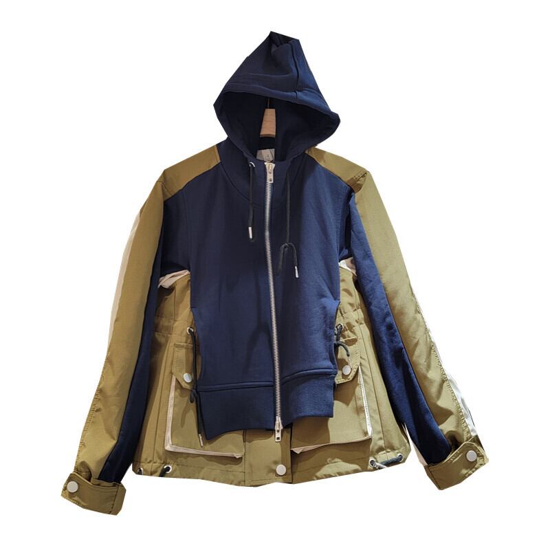 [EWQ] フード付きパッチワークコントラストジャケットポケットルーズジャケットコートアウター秋冬 16U4649 オータム 秋物 ウィンター 冬物