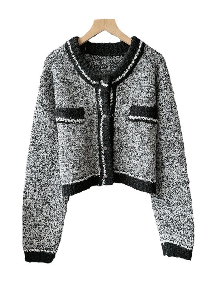 [EWQ] コントラストパッチワークカーディガンコート長袖シングルブレストルーズセータージャケット秋冬 16U4001 ロング オータム 秋物 ウィンター 冬物