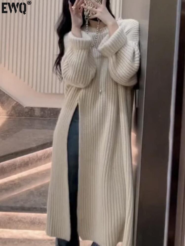 [EWQ] 分丈セーター レディース 秋 暖かさを保つ 厚手 長袖 プルオーバー ニット トップス 秋 16U4592 ロング オータム 秋物
