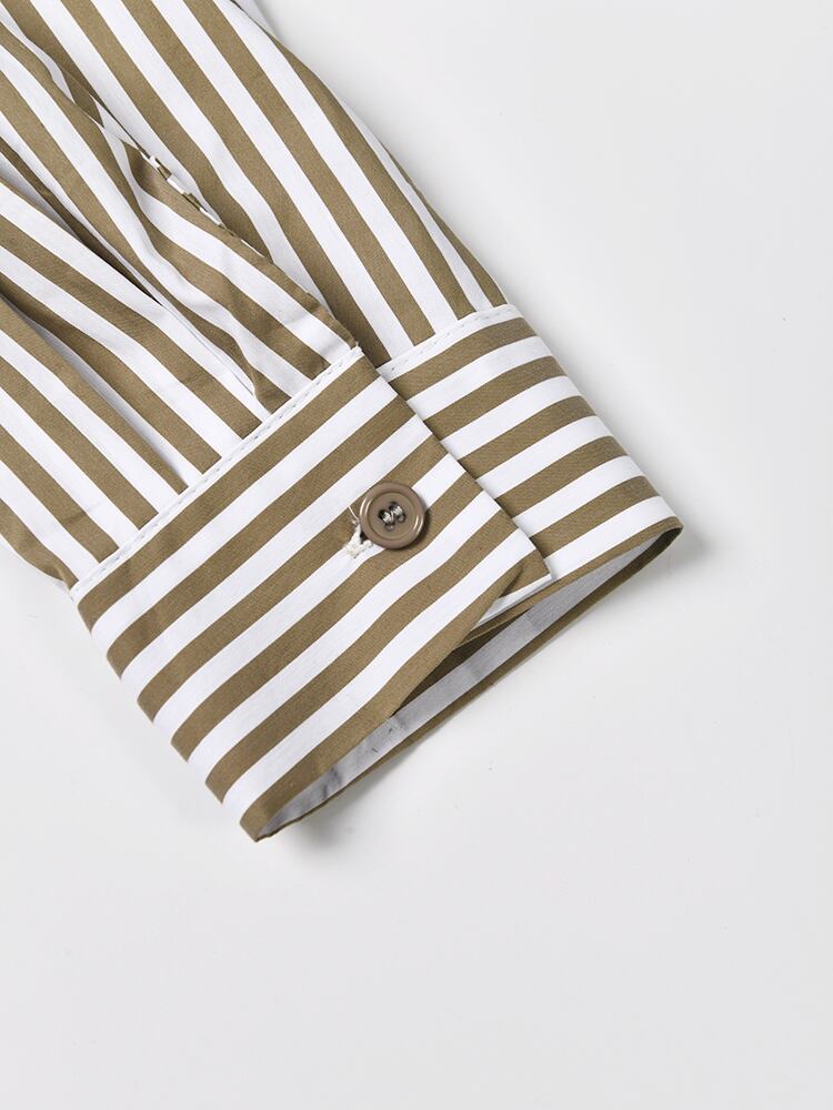 [EWQ] フェイクツーピースニットパッチワークシャツシングルブレストストライプルーズトップ秋冬 6U4123 オータム 秋物 ウィンター 冬物